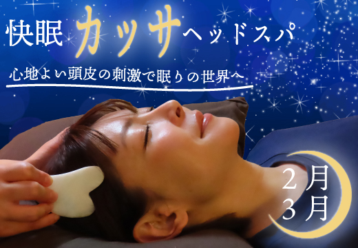 2月のシュエットは、快眠カッサヘッド/眼精疲労ヘッドスパ/快眠ホットストーンなど、冬の不調に寄り添うEVENTをご用意しています。